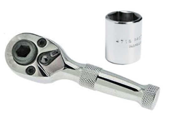 Requires a 9/16" wrench to operate. A ratchet and socket is the most convenient, but a box or open end wrench will do. Use your own or order the stubby ratchet below.